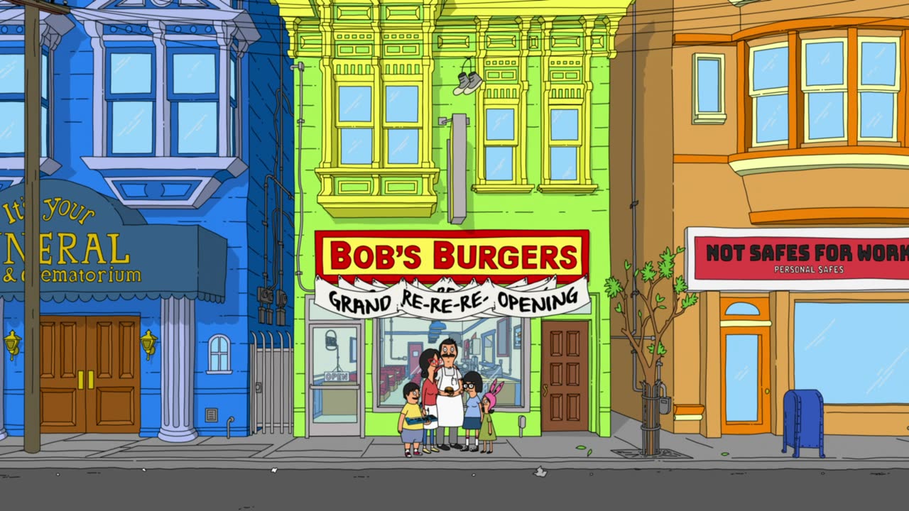 Bob's Burgers follows a third-generation restaurateur, Bob, as he runs Bob's Burgers with the help of his wife and their three kids. Bob and his quirky family have big ideas about burgers, but fall short on service and sophistication. Despite the greasy counters, lousy location and a dearth of customers, Bob and his family are determined to make Bob's Burgers "grand re-re-re-opening" a success.