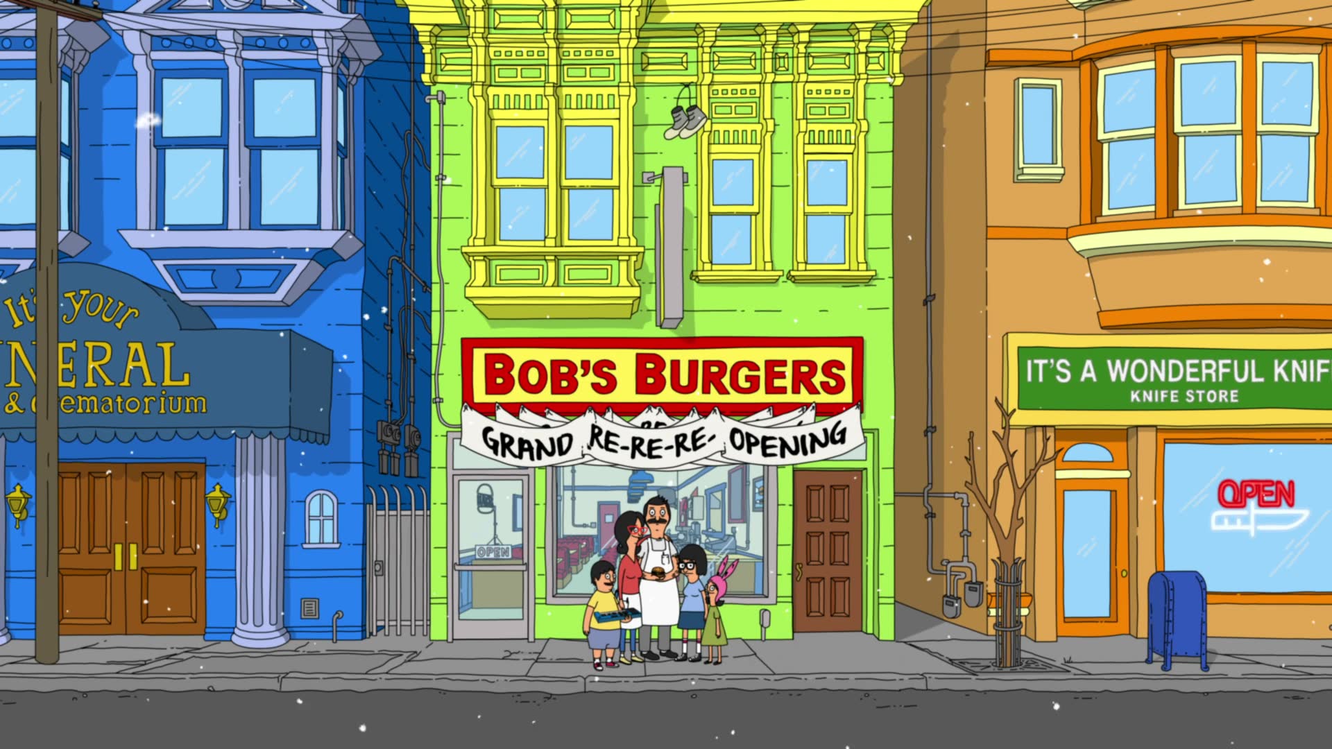 Bob's Burgers follows a third-generation restaurateur, Bob, as he runs Bob's Burgers with the help of his wife and their three kids. Bob and his quirky family have big ideas about burgers, but fall short on service and sophistication. Despite the greasy counters, lousy location and a dearth of customers, Bob and his family are determined to make Bob's Burgers "grand re-re-re-opening" a success.