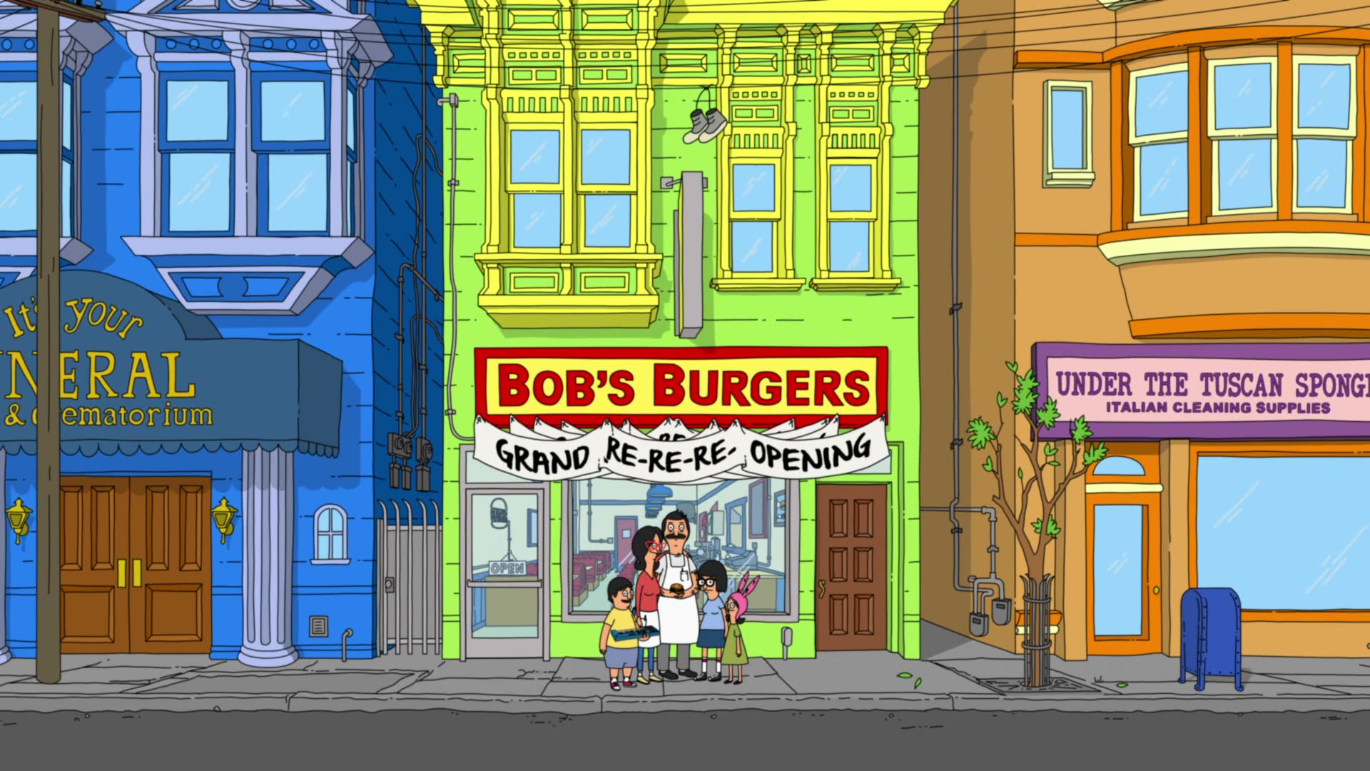 Bob's Burgers follows a third-generation restaurateur, Bob, as he runs Bob's Burgers with the help of his wife and their three kids. Bob and his quirky family have big ideas about burgers, but fall short on service and sophistication. Despite the greasy counters, lousy location and a dearth of customers, Bob and his family are determined to make Bob's Burgers "grand re-re-re-opening" a success.