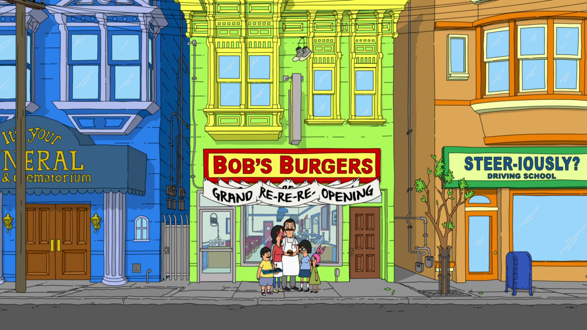 Bob's Burgers follows a third-generation restaurateur, Bob, as he runs Bob's Burgers with the help of his wife and their three kids. Bob and his quirky family have big ideas about burgers, but fall short on service and sophistication. Despite the greasy counters, lousy location and a dearth of customers, Bob and his family are determined to make Bob's Burgers "grand re-re-re-opening" a success.