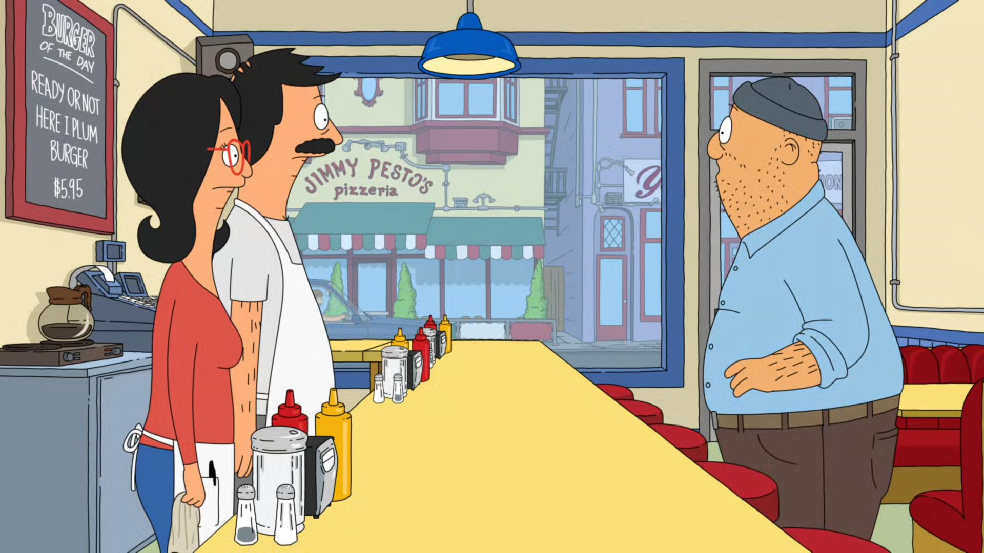 Bob's Burgers follows a third-generation restaurateur, Bob, as he runs Bob's Burgers with the help of his wife and their three kids. Bob and his quirky family have big ideas about burgers, but fall short on service and sophistication. Despite the greasy counters, lousy location and a dearth of customers, Bob and his family are determined to make Bob's Burgers "grand re-re-re-opening" a success.