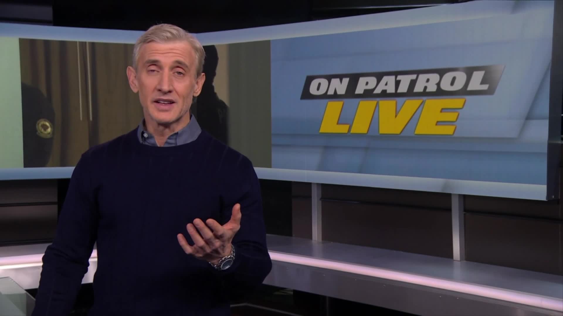 "On Patrol: Live" follows police officers and sheriff's deputies from diverse agencies in different cities across the country for three hours. Program hosts Dan Abrams, retired Tulsa Police Department Sgt. Sean "Sticks" Larkin and Deputy Sheriff Curtis Wilson provide minute-by-minute perspective and analysis from a central studio location during footage. Local residents from the communities of featured departments are given the opportunity to have a firsthand experience during ride-alongs with officers on live nights.