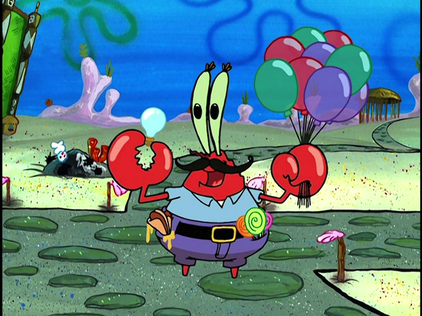 Deep down in the Pacific Ocean in the subterranean city of Bikini Bottom lives a square yellow sponge named SpongeBob SquarePants. SpongeBob lives in a pineapple with his pet snail, Gary, loves his job as a fry cook at the Krusty Krab, and has a knack for getting into all kinds of trouble without really trying. When he's not getting on the nerves of his cranky next door neighbor Squidward, SpongeBob can usually be found smack in the middle of all sorts of strange situations with his best buddy, the simple yet lovable starfish, Patrick, or his thrill-seeking surfer-girl squirrel pal, Sandy Cheeks.