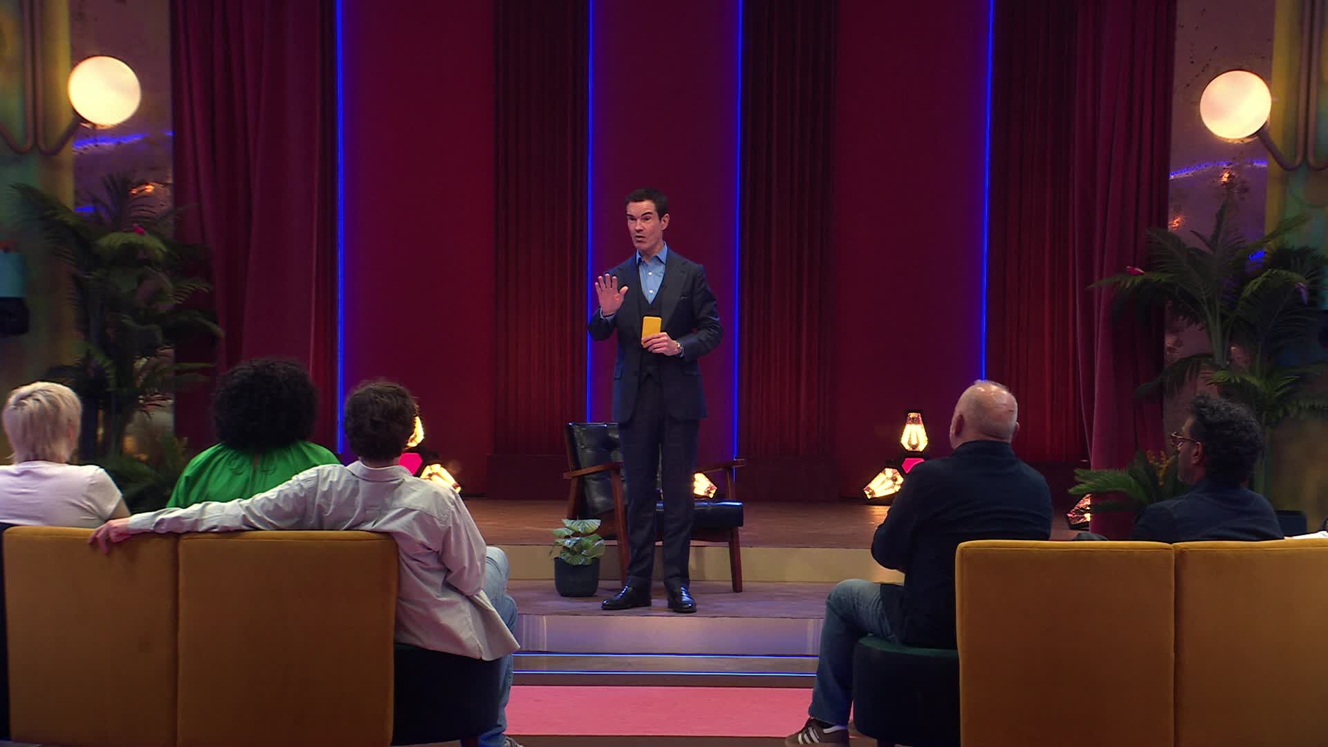 Famous for his dark humour, one liners and THAT laugh, Jimmy Carr challenges 10 of Britain’s funniest comics to spend the day together without so much as cracking a smile. The 10 comics use every ounce of their comedic talents to try and break their opponents without cracking up themselves.