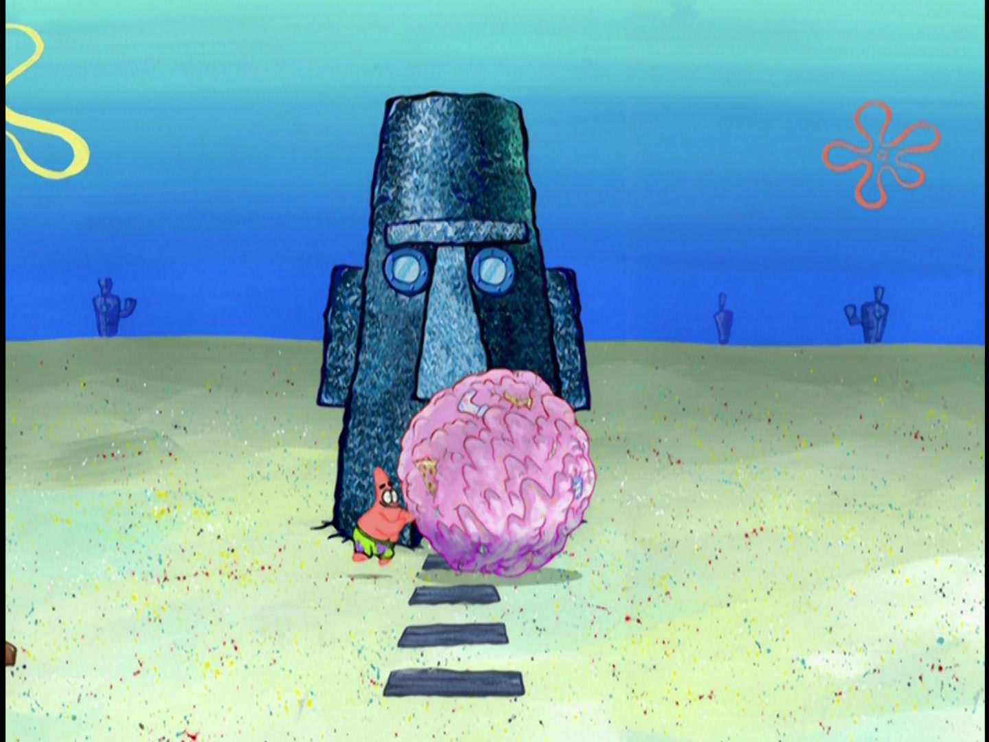 Deep down in the Pacific Ocean in the subterranean city of Bikini Bottom lives a square yellow sponge named SpongeBob SquarePants. SpongeBob lives in a pineapple with his pet snail, Gary, loves his job as a fry cook at the Krusty Krab, and has a knack for getting into all kinds of trouble without really trying. When he's not getting on the nerves of his cranky next door neighbor Squidward, SpongeBob can usually be found smack in the middle of all sorts of strange situations with his best buddy, the simple yet lovable starfish, Patrick, or his thrill-seeking surfer-girl squirrel pal, Sandy Cheeks.