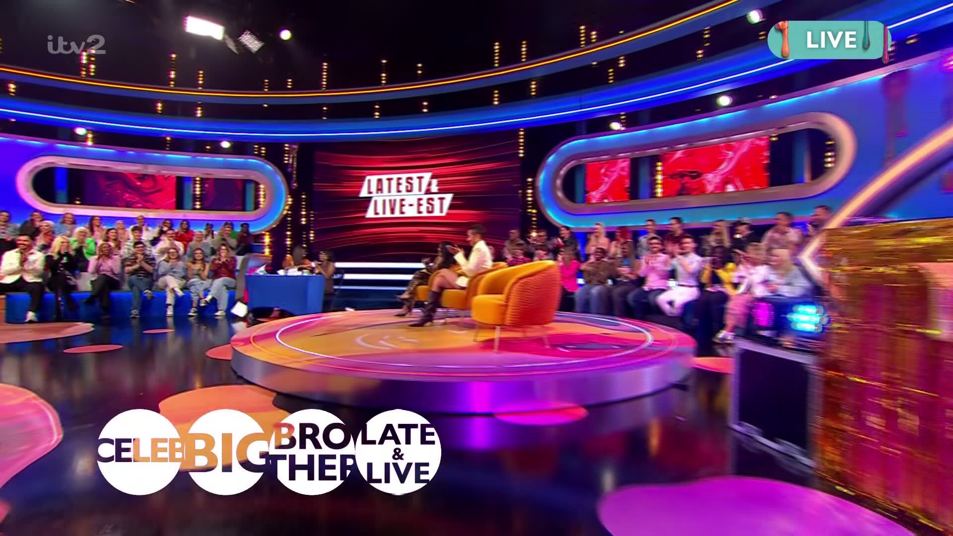 Big Brother hosts AJ Odudu and Will Best present from a studio just a stone's throw from the Big Brother house, featuring celebrity guests and a live studio audience.