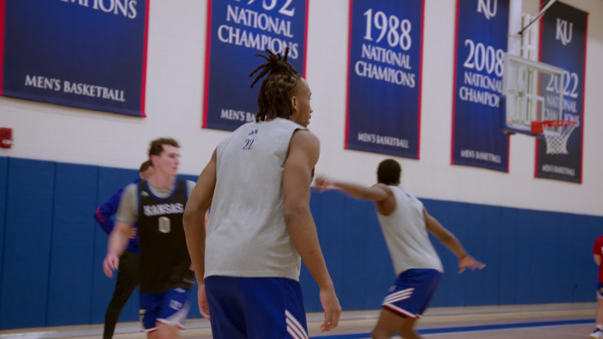 Follows the University of Michigan Wolverines and the University of Kansas Jayhawks basketball teams across the entire season as they bid for a national championship.