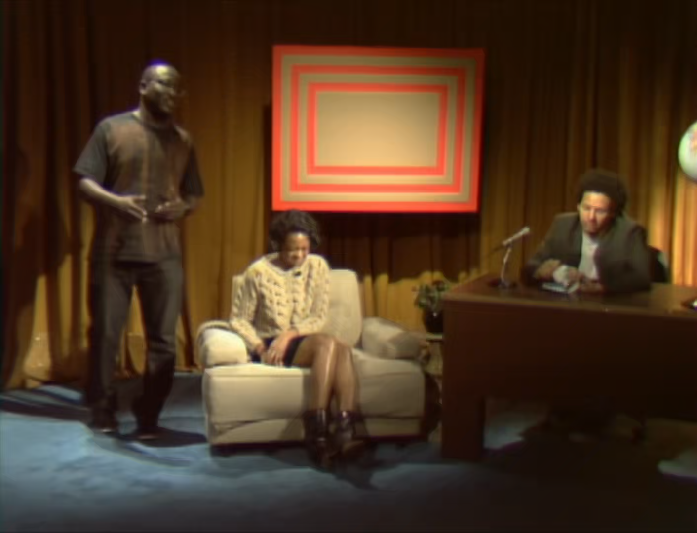 A comedic talk show from an alternate reality featuring unstable hosts, a variety of celebrities—both real and fake—and unusual studio action.