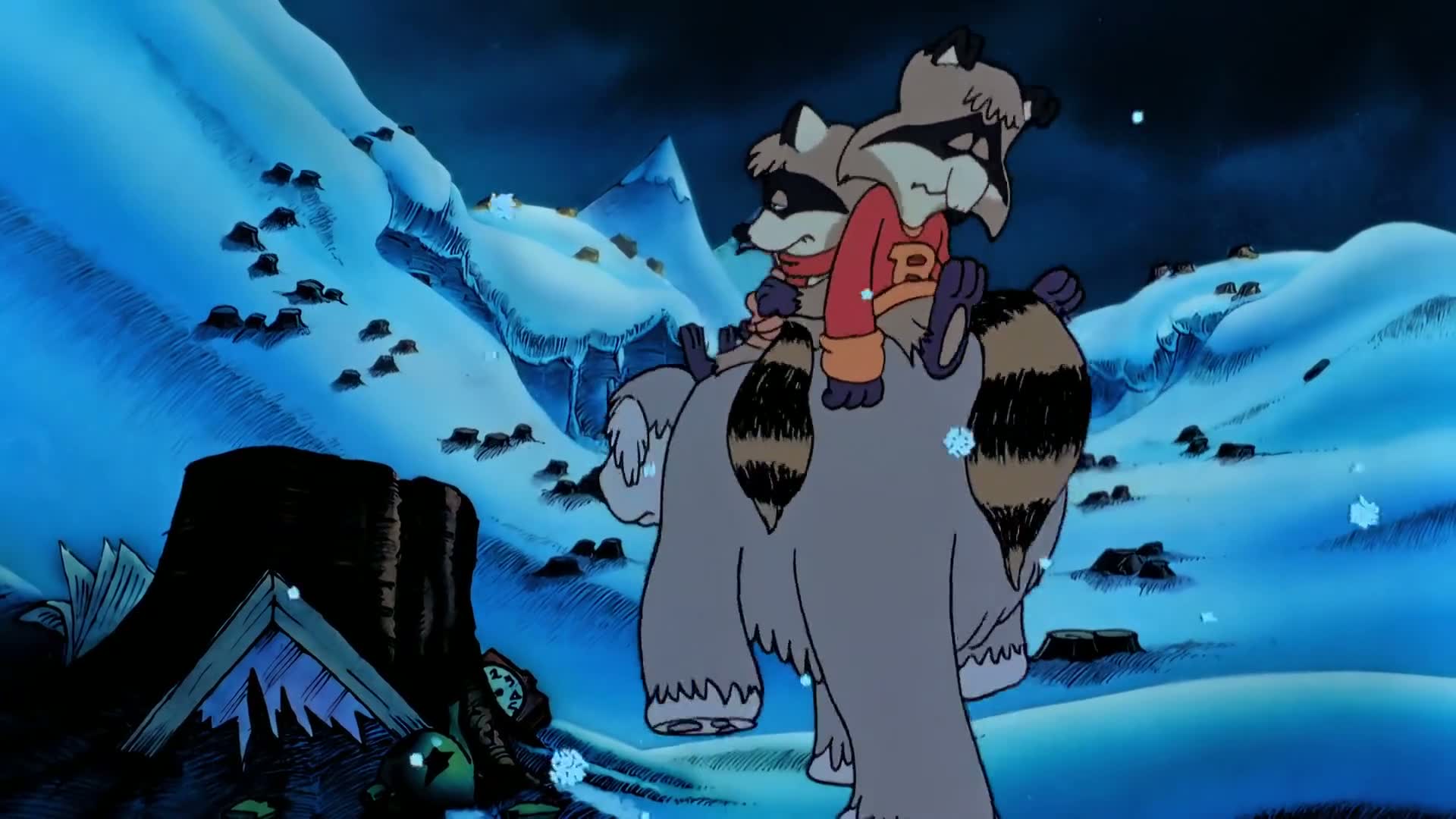 In this prelude to the television series 'The Raccoons', Bert, Melissa, and Ralph Raccoon have their home accidentally stolen when it is cut down to become a Christmas tree.