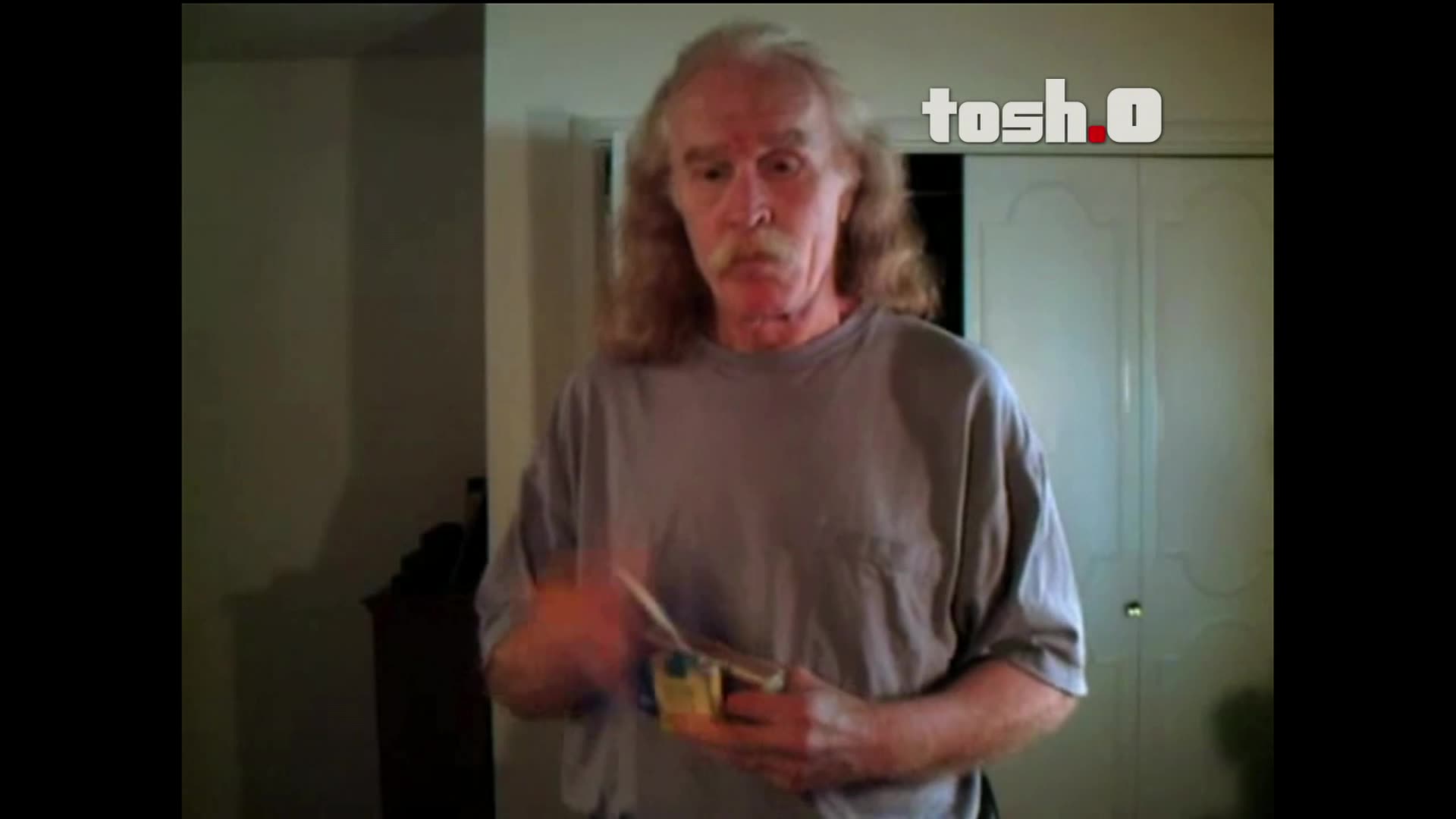 00:00:35.000 : Tosh shows some internet clips and gives a Video Breakdown
