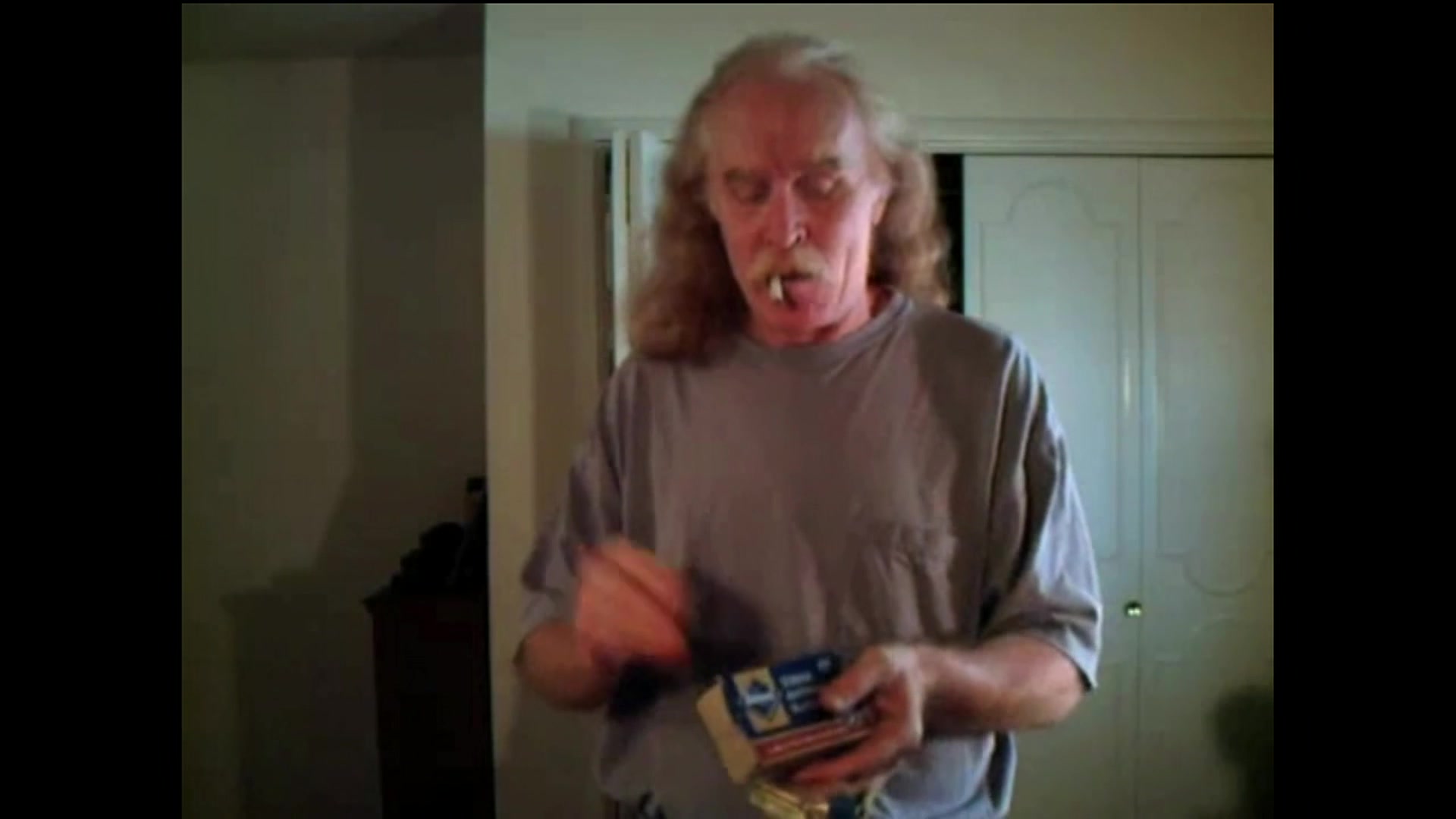 00:00:08.000 : A man has a unique way of lighting a cigarette