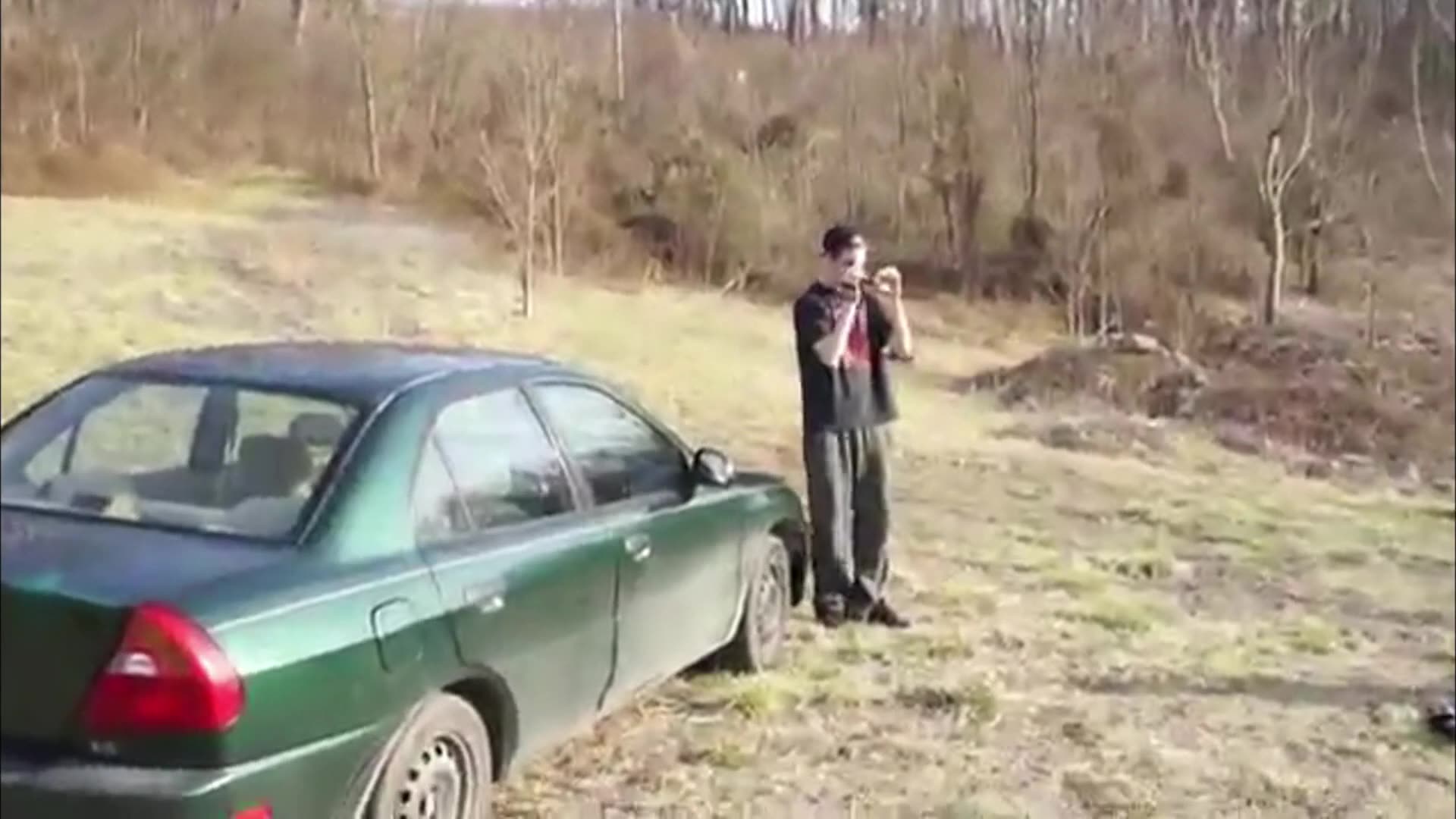 00:00:13.000 : A man runs his head into a car