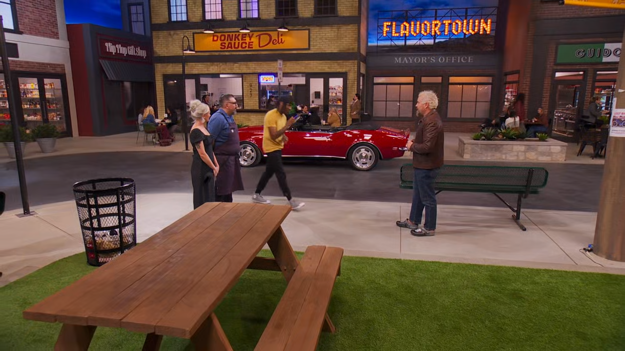 Long referred to but never before seen, the mythical and delicious Flavortown will be the setting for this multi-round, culinary competition. In each episode, Fieri will welcome three chefs to Flavortown where skills and cooking chops can earn advantages and ultimately a win. Competitors will choose their own adventure as they compete in authentic food establishments ranging from street food carts to neighborhood spots to fast casual eateries and the finest fine dining restaurants in the world. The chefs must be quick on their feet as their culinary knowledge, technical skills, and overall cooking acumen are tested round after round. With restaurant names inspired by Guy's life, the series will deliver everything fans have ever dreamed Flavortown could be. The winner of each episode has a chance to score up to $20,000 in prize money and will return to defend their title against two new chefs the following week.