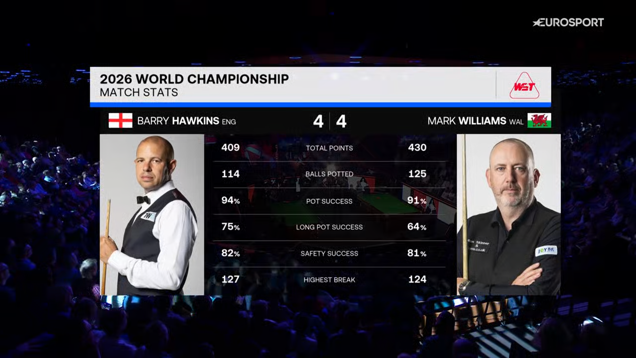 World Snooker Championship 2026 Round 2 Barry Hawkins vs Mark Williams Part 2 720p HEVC x265-MeGusta