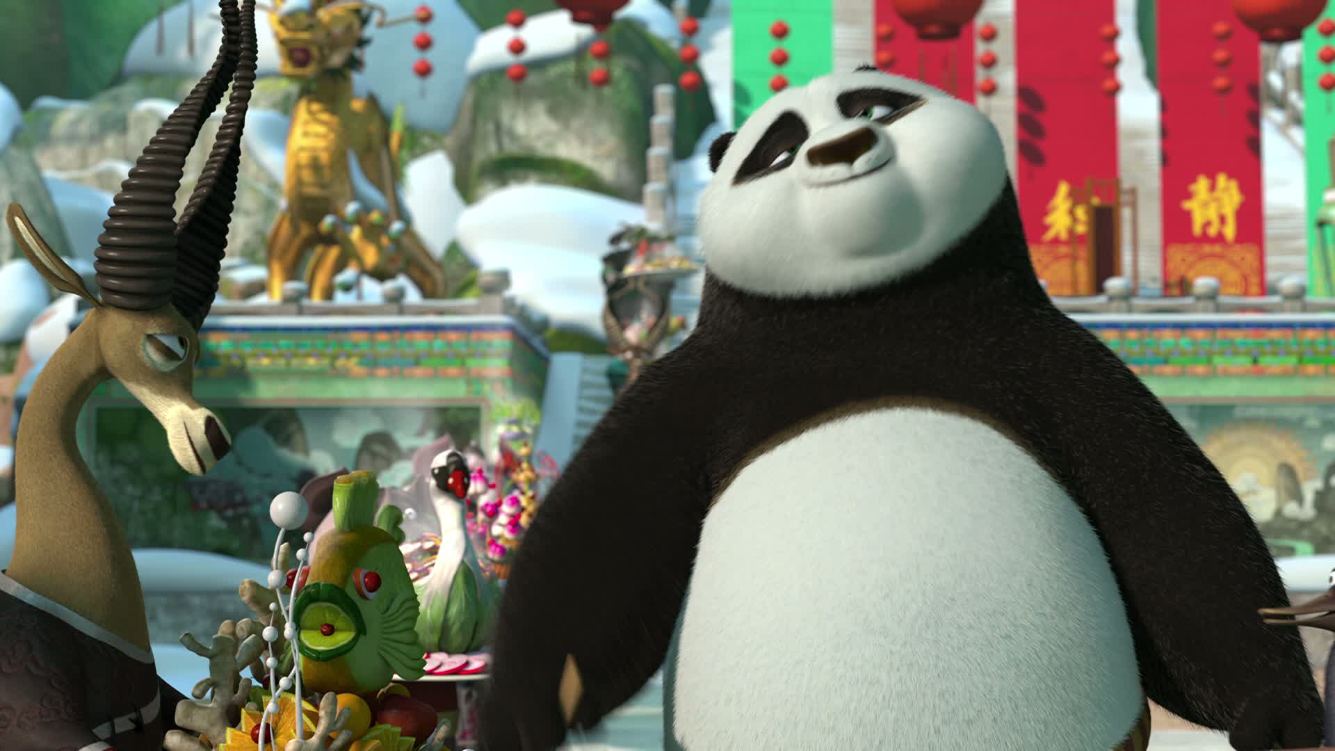 The Winter Feast is Po's favorite holiday. Every year he and his father hang decorations, cook together, and serve noodle soup to the villagers. But this year Shifu informs Po that as Dragon Warrior, it is his duty to host the formal Winter Feast at the Jade Palace. Po is caught between his obligations as the Dragon Warrior and his family traditions: between Shifu and Mr. Ping.