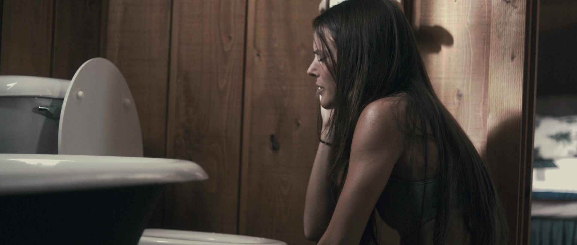 00:07:31.000 : en:Jennifer spills wine on clothes & is spied on, cabin