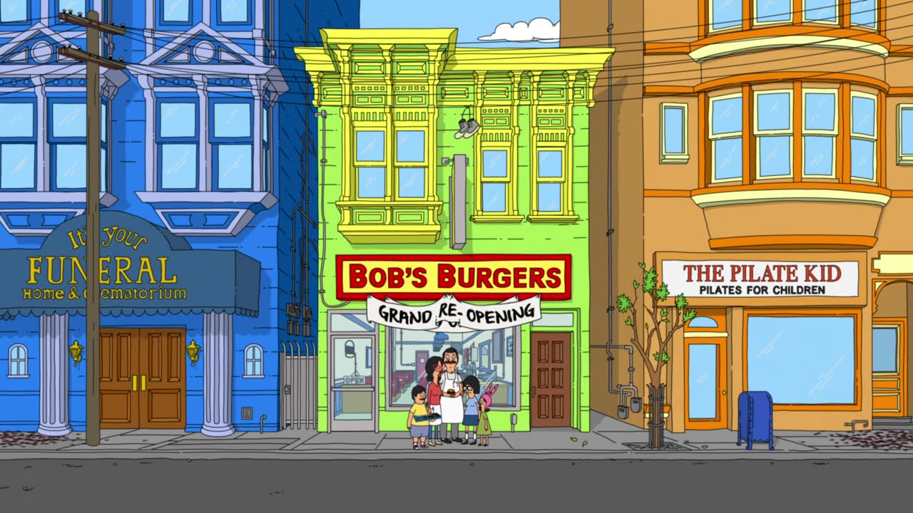 Bob's Burgers follows a third-generation restaurateur, Bob, as he runs Bob's Burgers with the help of his wife and their three kids. Bob and his quirky family have big ideas about burgers, but fall short on service and sophistication. Despite the greasy counters, lousy location and a dearth of customers, Bob and his family are determined to make Bob's Burgers "grand re-re-re-opening" a success.