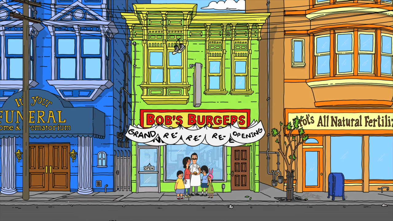 Bob's Burgers follows a third-generation restaurateur, Bob, as he runs Bob's Burgers with the help of his wife and their three kids. Bob and his quirky family have big ideas about burgers, but fall short on service and sophistication. Despite the greasy counters, lousy location and a dearth of customers, Bob and his family are determined to make Bob's Burgers "grand re-re-re-opening" a success.